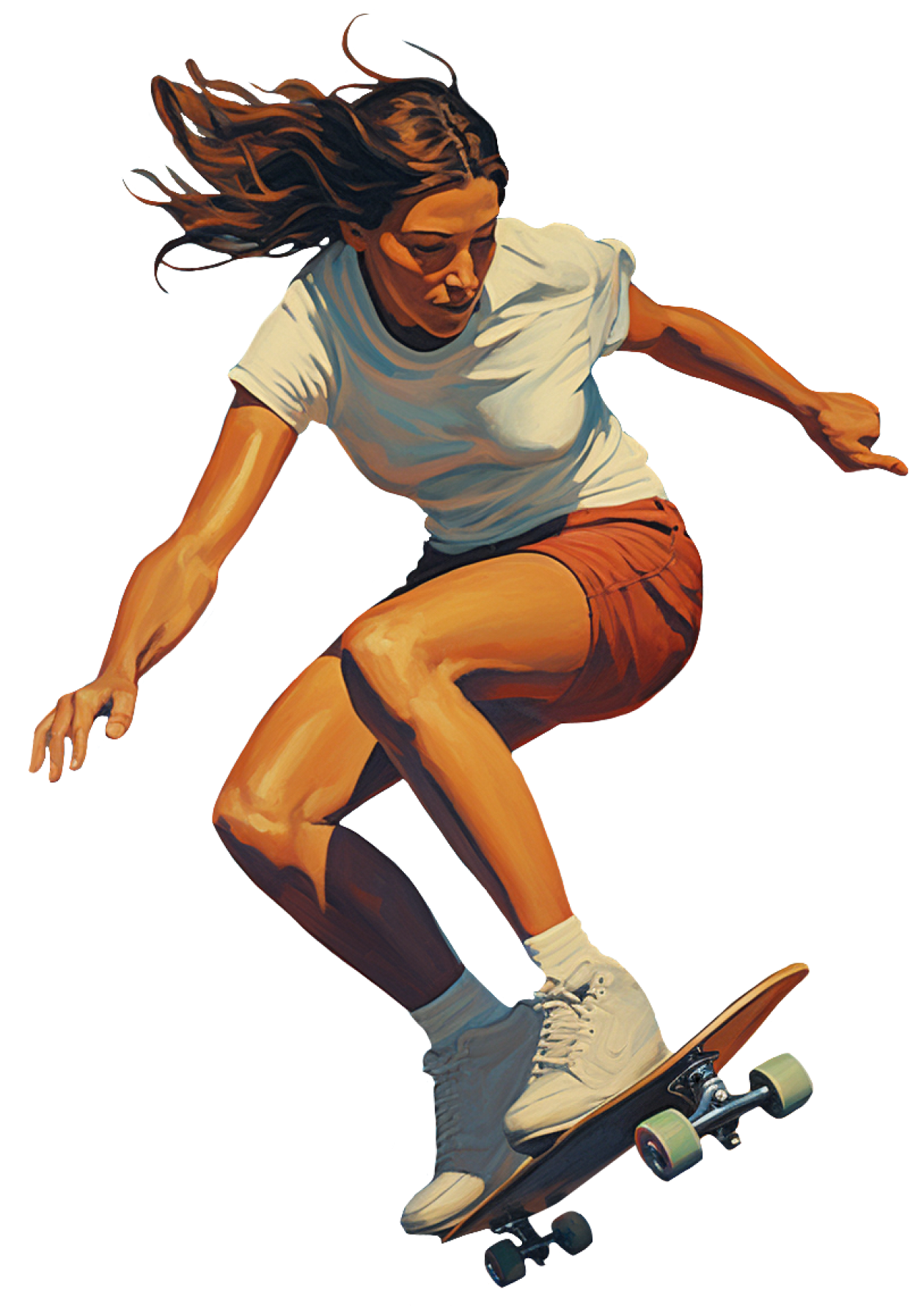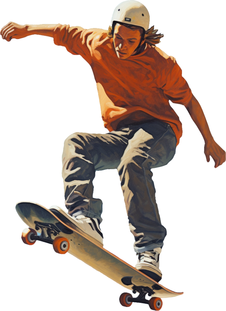Экстремальный вид спорта, который заключается в катании и исполнении трюков на специальной доске. Ее придумали серферы в 1930-е, чтобы ездить по дорогам, когда нет волн.